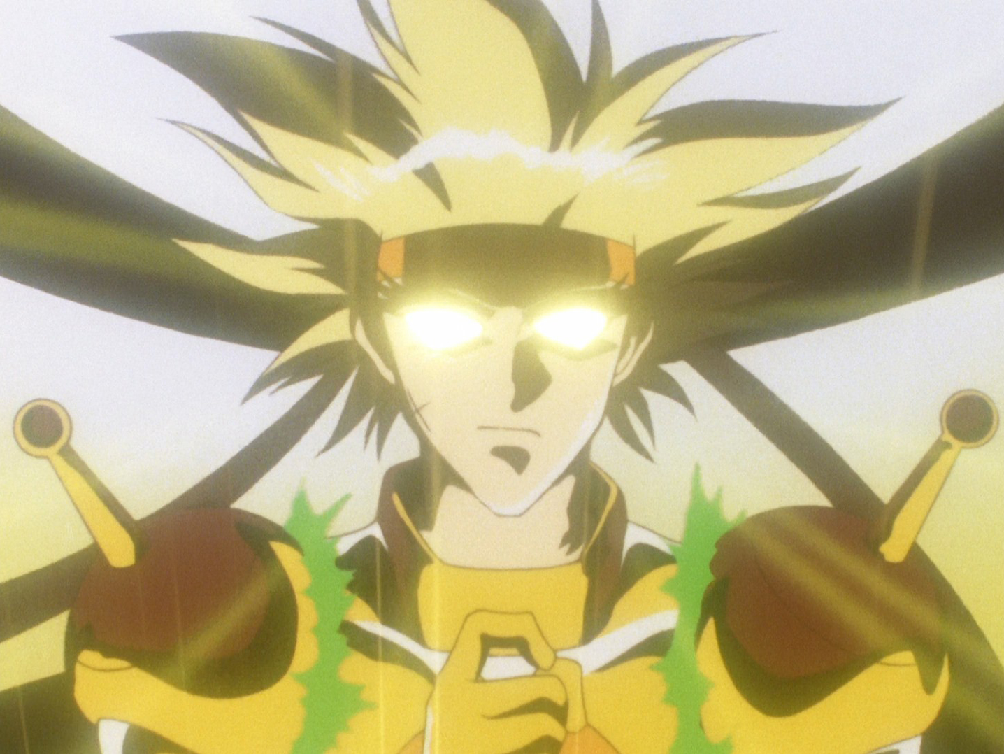 After foolishly running after Master Asia with no plan Domon is stopped by Schwarz who then tells him to “master his Super Mode” and so all five main Gundam Fighters head to the Guyana Highlands for a training arc. Chibodee struggles with the memories of being DG Cell’d and his all-female support group are put at risk until he overcomes his fear, Sai Saici acts like a pervert with Rain and a female member of the Neo Russian crew but freezes in fear at the sight of Argo due to PTSD from the Devil Gundam but after he and Argo team up (with Domon and Schwarz) to defeat a DG Cell copy of his Dragon Gundam he overcomes his fear, and George suddenly remembers a year ago when he and a rival to his position of Neo France’s Gundam Fighter, Jean-Pierre Mirabeau, had a fight and in deflecting a missile aimed at their King by the disgruntled loser George accidentally caused the deaths of innocent bystanders, which coincidentally leads to Jean-Pierre breaking out of prison and head to the Highlands to fight George out of revenge with his DG Cell-infused Gundam only to lose when George over comes his fear and regret. This obviously leaves Domon to complete his training, which he does when he nearly dies fighting Schwarz and finds himself peaceful and calm at the moment before death, allowing him to tap into his true potential, or something. Classic “serine mind overcomes hearts clouded with anger” type stuff.