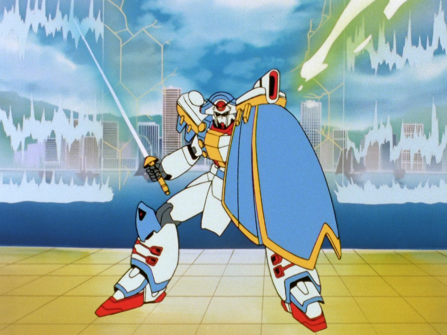 Episode 30 is a bit more significant as Domon fights the Neo Swedish Gundam Fighter Allenby Beardsley, with the two hitting it off pre-fight much to Rain’s displeasure. Their fight is one of mutual enjoyment until the Neo Swedes activate Allenby’s “Berserker Mode” which sends her into an uncontrollable rage. Domon isn’t impressed with the technology so destroys it, freeing Allenby from its control but she’s soon too exhausted to fight. It’s a fun episode and Allenby is a good addition to the cast. The next episode is another filler-feeling affair as Chibodee Crocket has to fight the Neo Portugal Fighter but is frozen in fear as its pilot dresses like a clown and he has a fear of clowns, but unsurprisingly he overcomes his fears to win (there’s a lot of that in G Gundam, in case you haven’t figured that out yet!) The main plot pushes its way in next as Domon and the Shuffle Alliance are targeted by assassins led by Michelo Chariot and other disqualified Gundam Fighters, and after Domon easily beats him once again he transforms his Gundam into the “Gundam Heaven’s Sword”, though Domon defeats that too. As all this went down we also found out that this year’s Tournament head / Neo Hong Kong Prime Minister Wong is in league with Master Asia and has brought the remains of the Devil Gundam to Neo Hong Kong in hopes to revive it once more.
