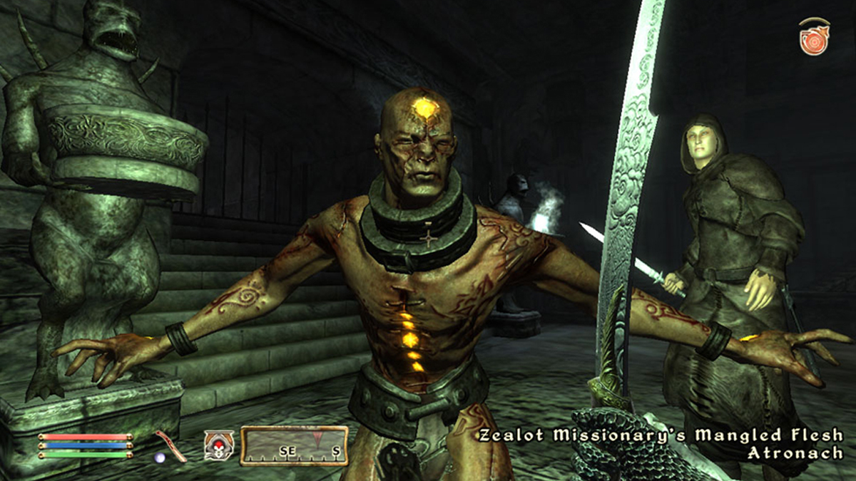 The story kicks off with your chosen Hero locked behind bars for a crime that’s never actually mentioned, and during a royal assassination plot Emperor Uriel Septim VII is being escorted out of the palace via your cells and he recognises you as someone from his dreams and allows you to follow him. Sadly despite best effort Uriel is still slain but before he dies he entrusts you with the “Amulet of Kings” and tells you to find Jauffre of the “Blades”, his personal royal guard. Due there being no heir a seal that had been in place to stop the hordes of Oblivion from breaking into regular reality begins to fail and portals open up across the continent, but luckily Jauffre reveals Uriel had a secret son called Martin who lives in a small town called Kvatch, and with Martin wearing the Amulet of Kings they can relight the sacred fires and stop the invasion. You make it to Kvatch only to see it in ruins due to an Oblivion Gate opening up outside it, but against all odds you and some locals (including Martin) beat back the hordes and close the gate. You and Martin then head to Jauffre only to find out he and his men came under attack and the Amulet was stolen. While Jauffre hides Martin at “Cloud Ruler Temple”, where the Blades are stationed, you go searching for clues about the group responsible for all this: Mythic Dawn and its leader Mankar Camoran, who worships Mehrunes Dagon, the Daedric Prince of Destruction.