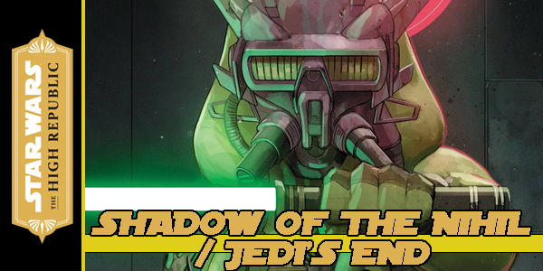 Although billed as two “story arcs” the finale to the first run of High Republic comics comes to a close really with the five part “Jedi’s End” story, and the two part “Shadow of the Nihil” is just a quick story to set it up. Still, those final few issues are great, being set to happen concurrently to the final adult novel in Phase 1 “The Fallen Star” as was obvious during the book. So let’s finally take a look at the other POV of that dramatic incident…